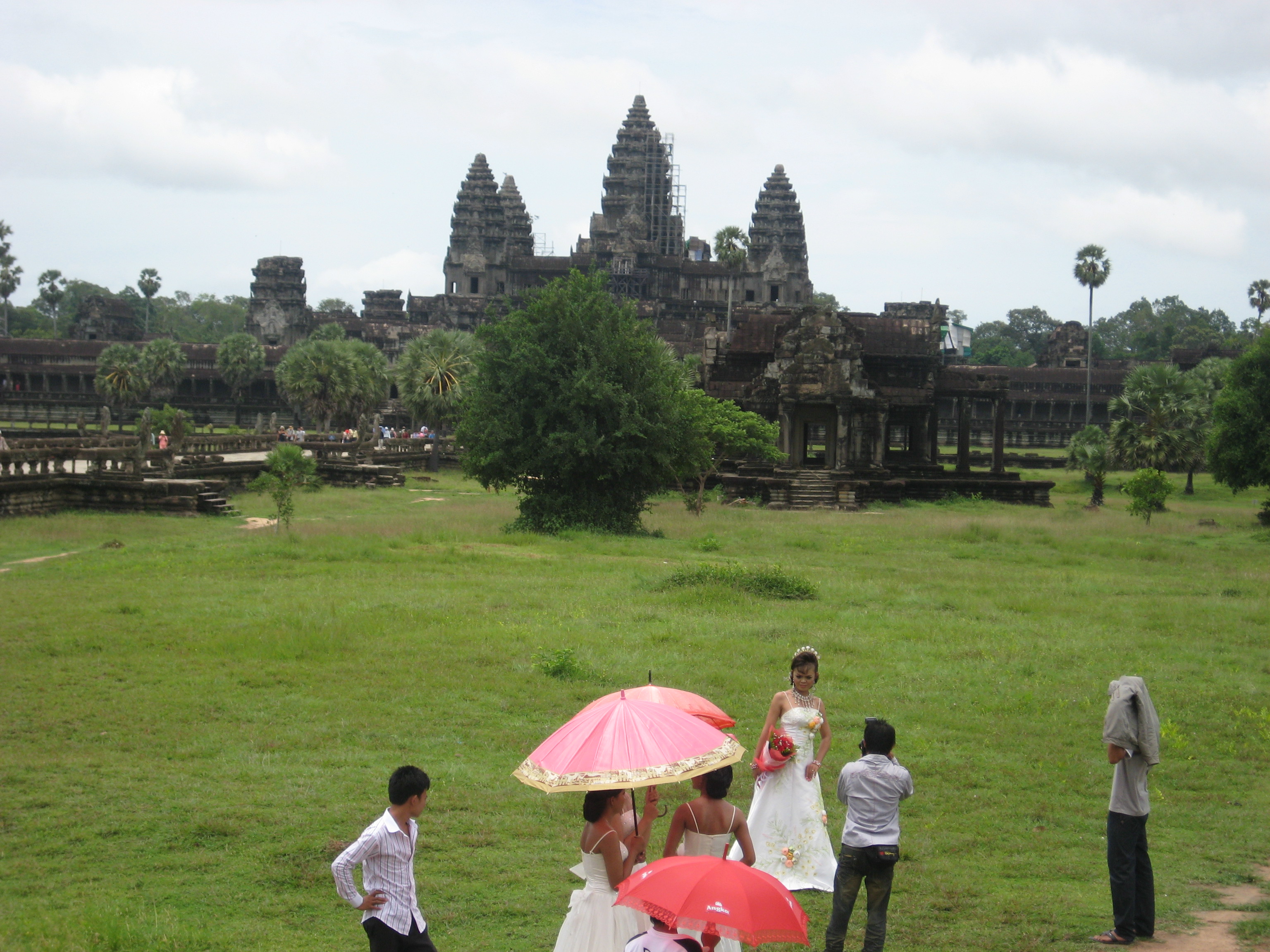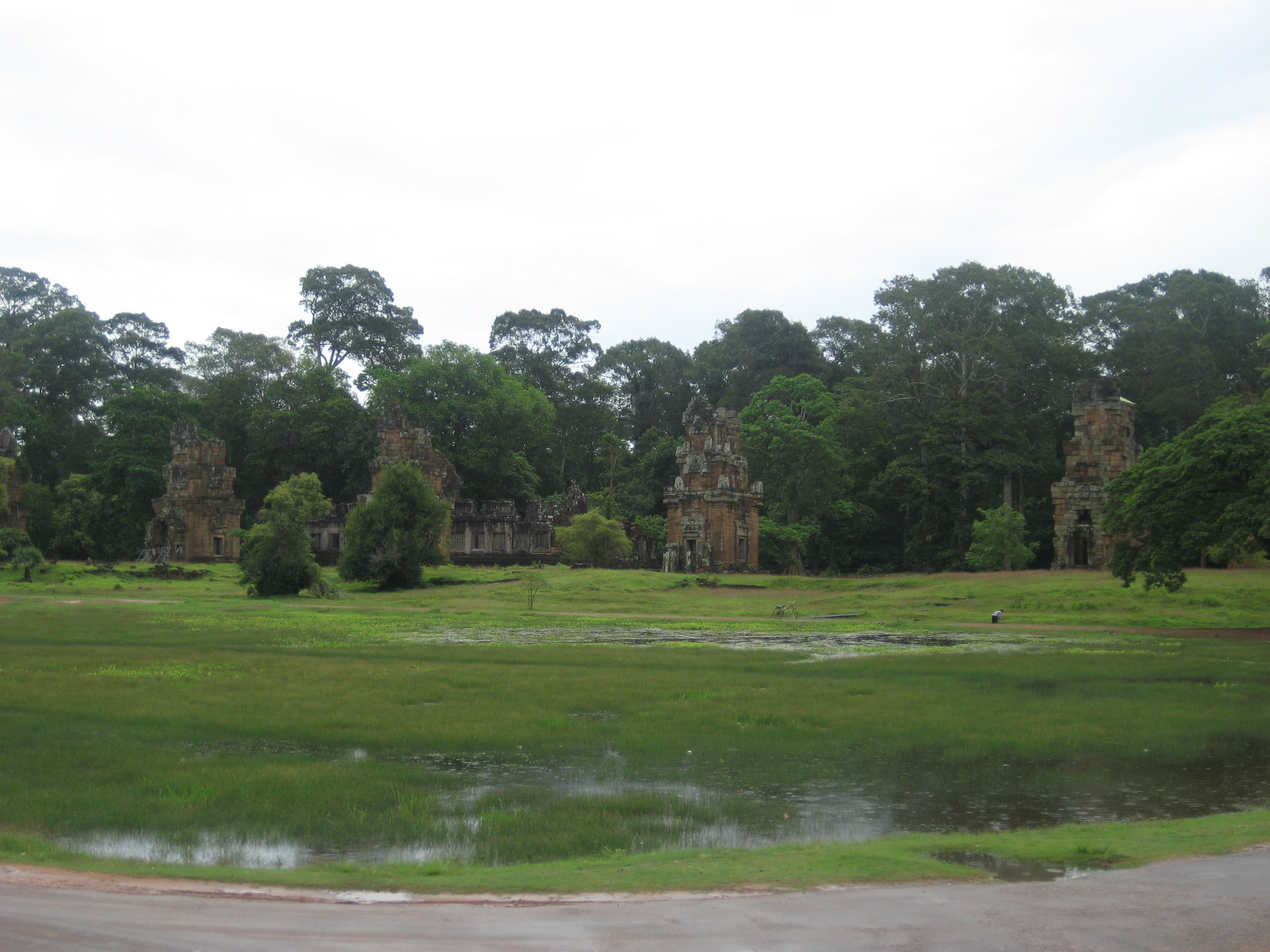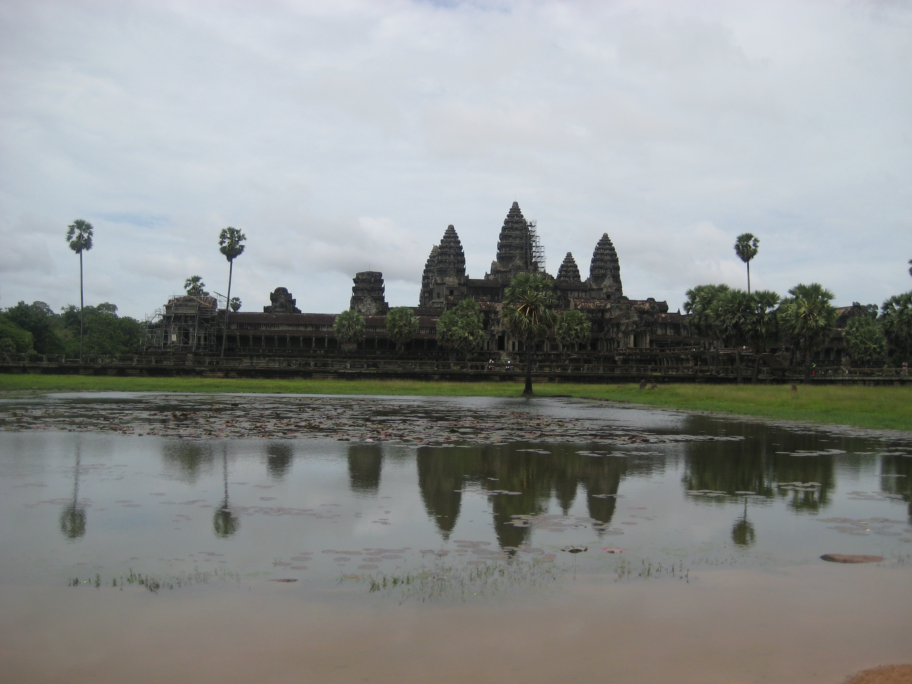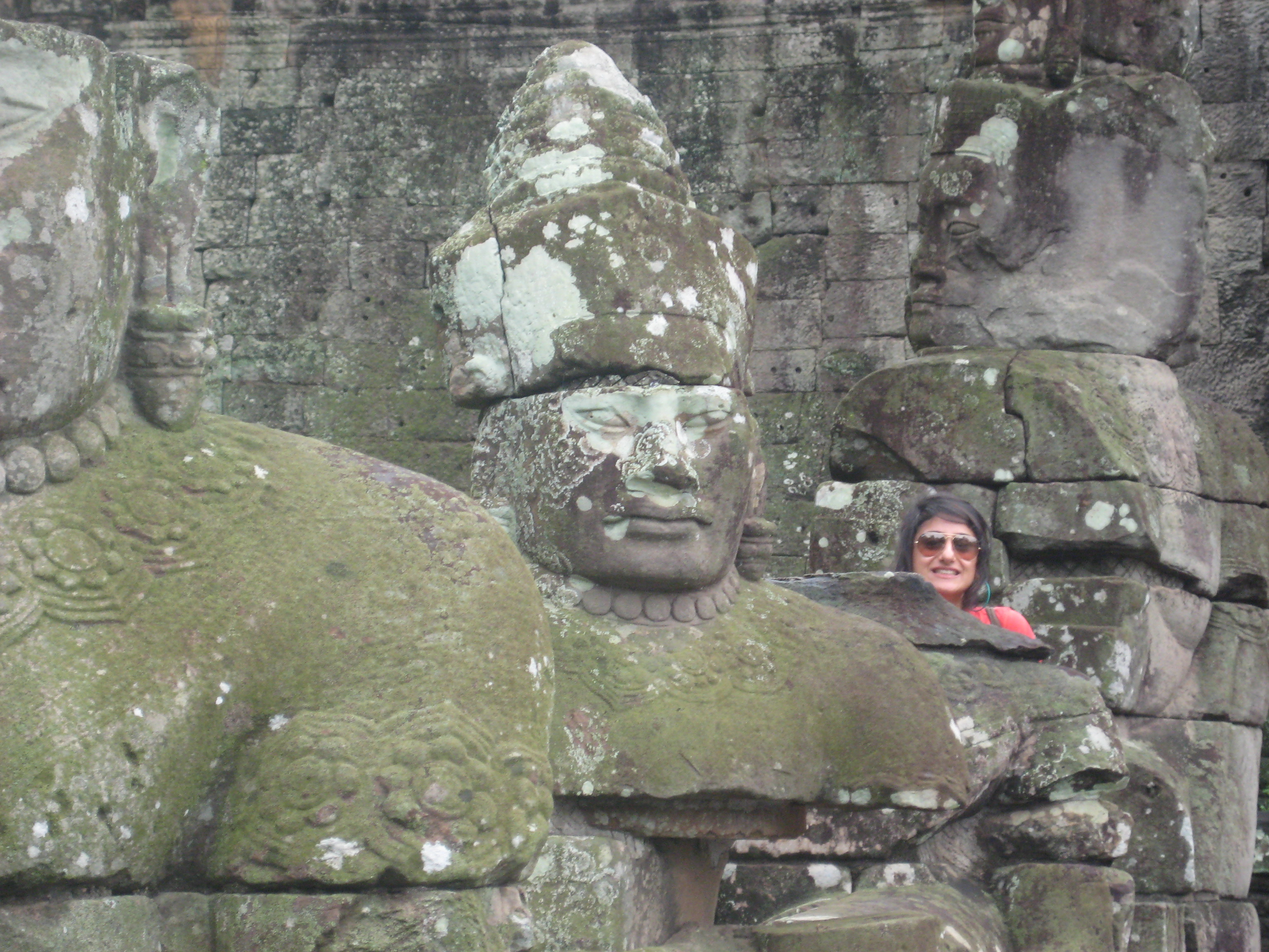 After visiting the two most monumental sites, we headed to the classical masterpiece of Khmer art, situated on a hill, with well preserved interior carvings of scenes from Indian literature in the galleries and five shrines that represented the “mythical” Mount Neru. The magnificent Angkor Wat. Our first view was a reflection of the temple on collected rain water right across, in addition to street kids yelling “One Dolla” and a couple of other tourist scams like horses and sunsets.