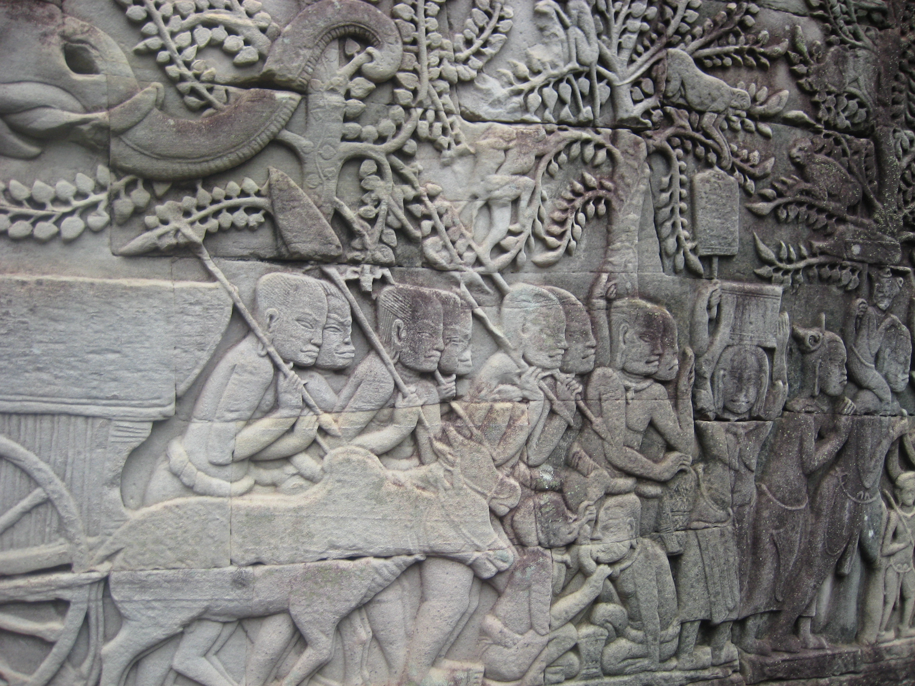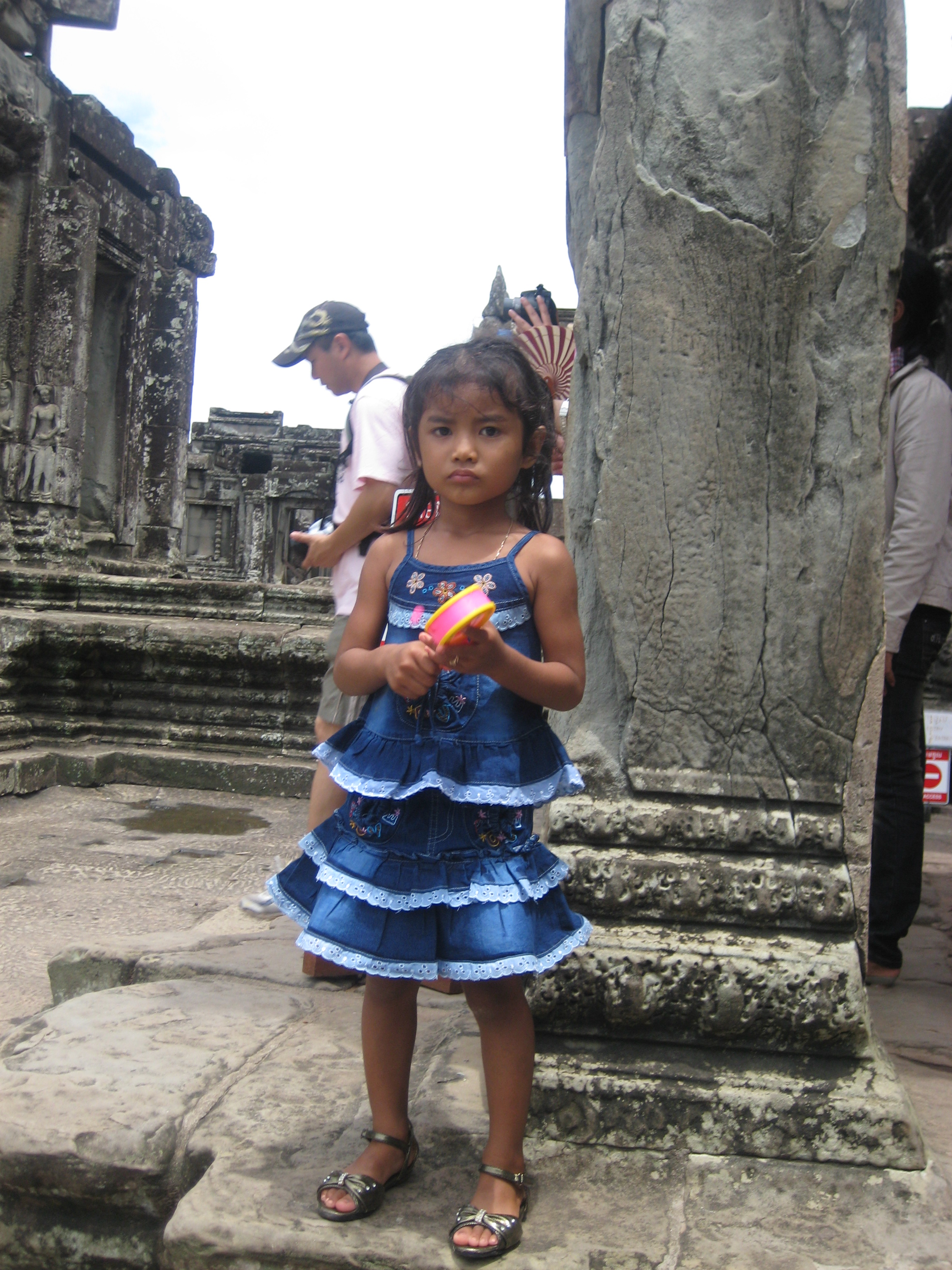 First, we entered baroque in style the city of Angkor Thom that shows off its pride, the most photographed monument in Angkor after Angkor Wat, Bayon. We pushed against hordes of tourists and street kids selling stuff on fragments of broken stone to observe towers and galleries surrounded by terraces of Lepper king and Elephants.