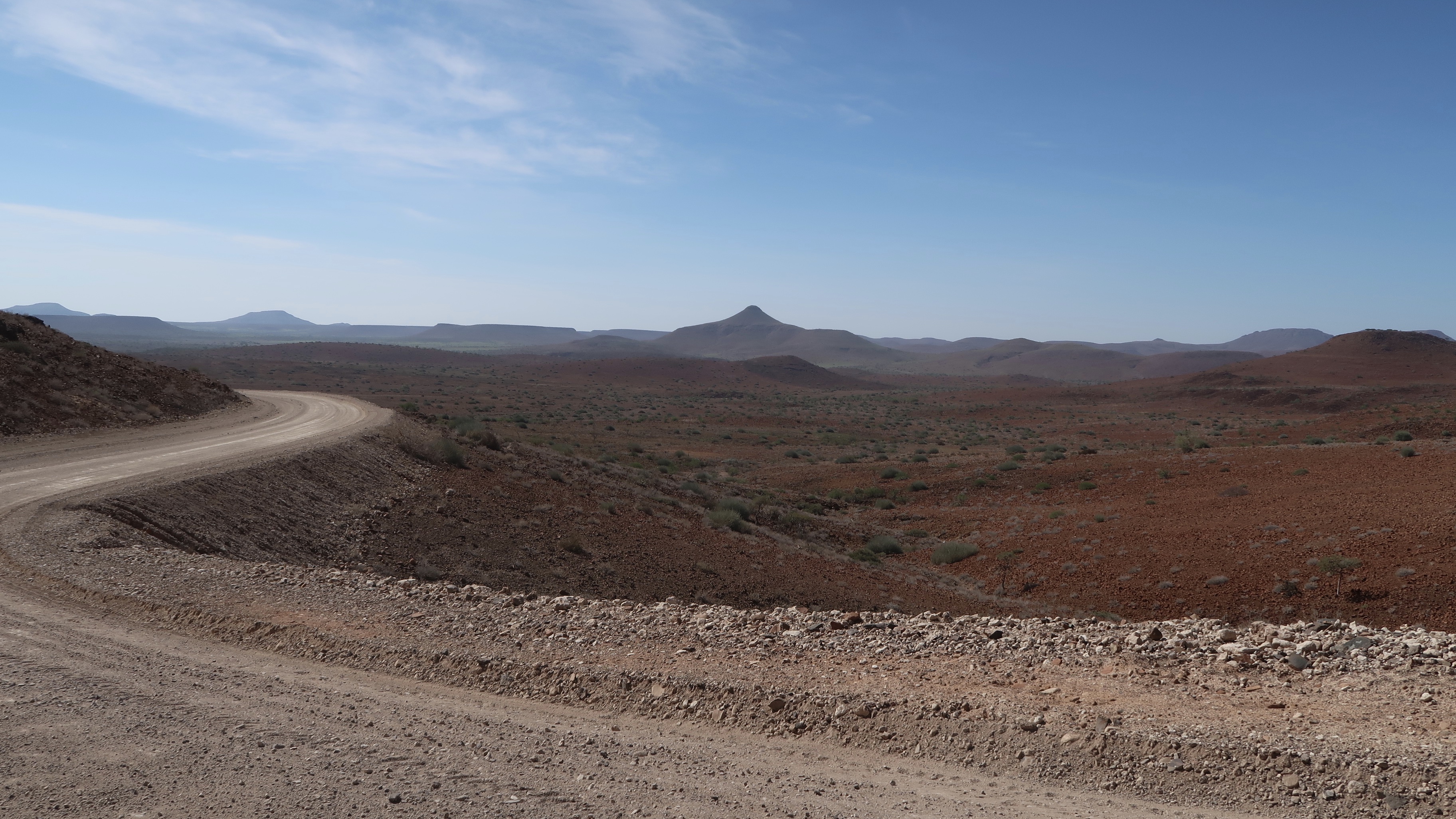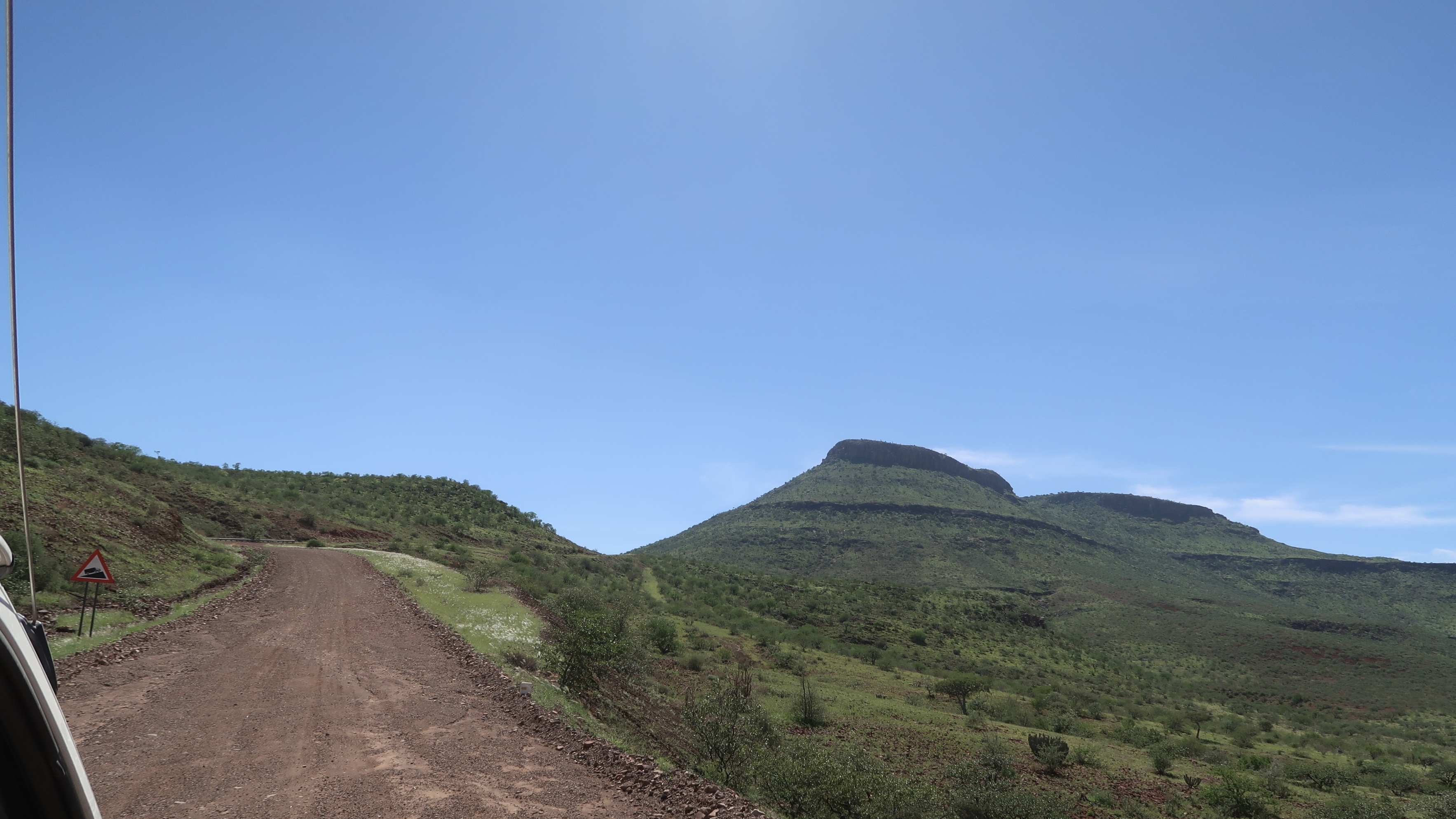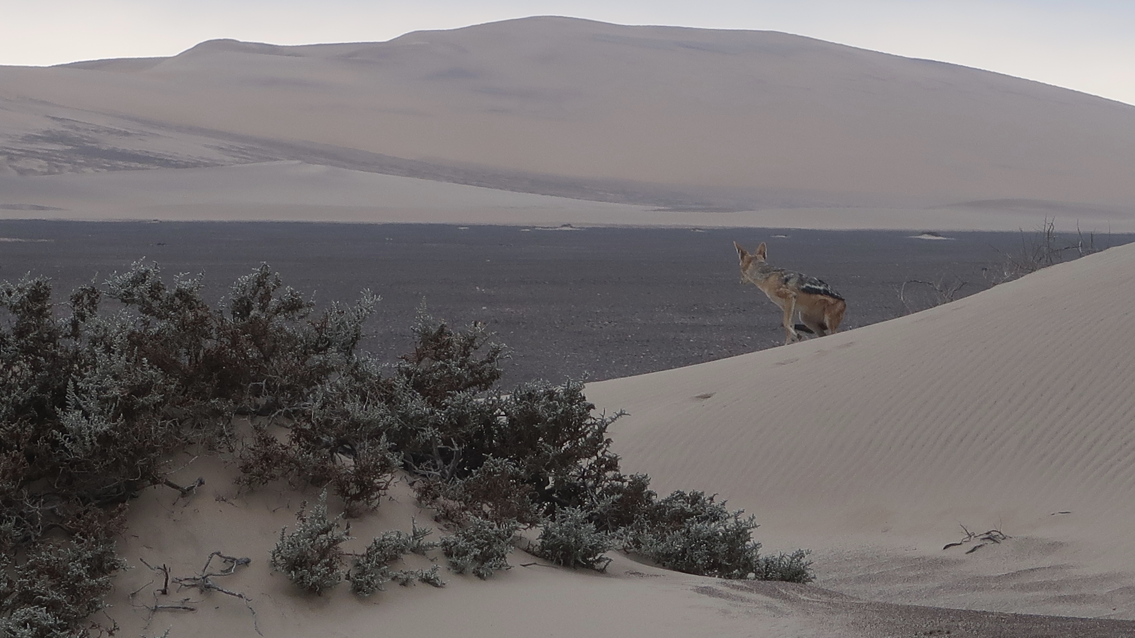 We checked out of Skeleton Coast Park and headed to the East towards Etosha National Park that surrounds the beautiful Etosha salt pan. The landscape shift was dramatic yet delicate under clear skies, from huge vast plains of desert that gradually transformed dotted green bushes into a vast expanse of green pastures as we approached the park. We were lucky to see a jackal’s behind on our way out of Skeleton Coast.