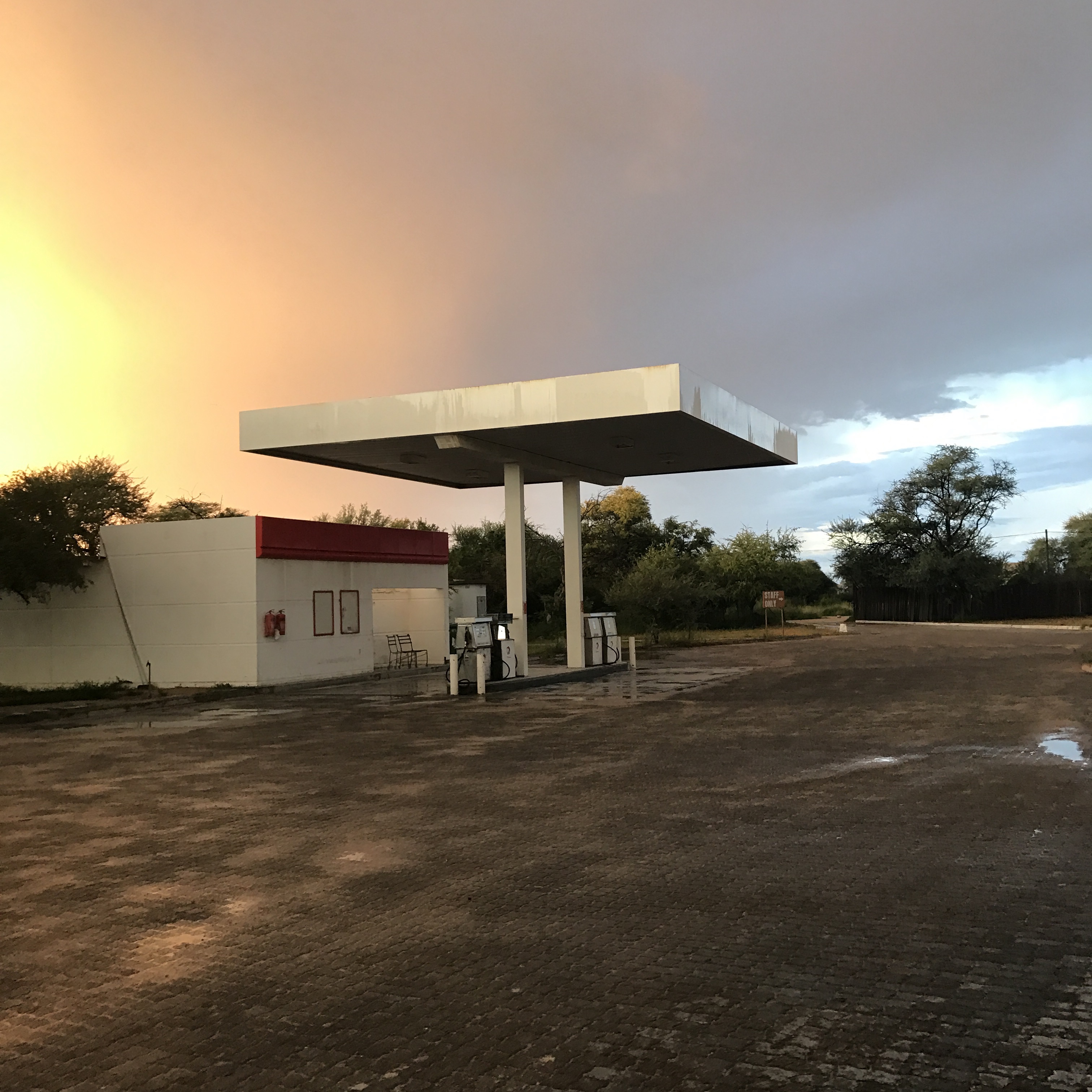 We arrived at the Okaukeujo Camp at 4:30pm. The camp is famous for its waterhole that was across our chalet. We hung out at the waterhole expecting to see animals, and saw nothing but a beautiful sunset. Naturally it rained, so the animals didn’t have to walk too far for water. It’s unpredictable with game drives, everyone wants the cats, when it is clearly up to nature.