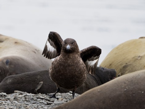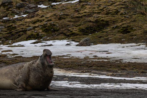 Expectations of a golden hour faded into a dim, moody morning as a ring of mist swallowed the rising sun. As we approached the shore, we were met with a view of geological transition – receding glaciers and exposed rock giving way to glacial lakes all set against the backdrop of the Allardyce mountain range, their summits lost in heavy mist. To add to the challenge, heavy swells turned our landing into a balancing act and forcing us to move with caution as gigantic male elephant seal bulls lay sprawled across the land. They repeatedly let out abrupt grunts and were ready to charge any younger bulls lingering in the periphery who were testing their luck. It was peak breeding season, the very spectacle that makes St Andrews Bay the poster child of South Georgia. With penguins and seals breeding all year round, some months slower than others, it is the dramatic film hot spot made famous by BBC, Natgeo and Planetearth documentaries.